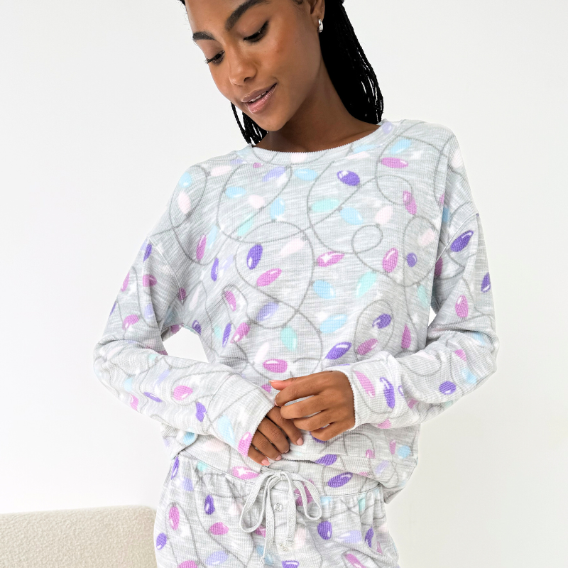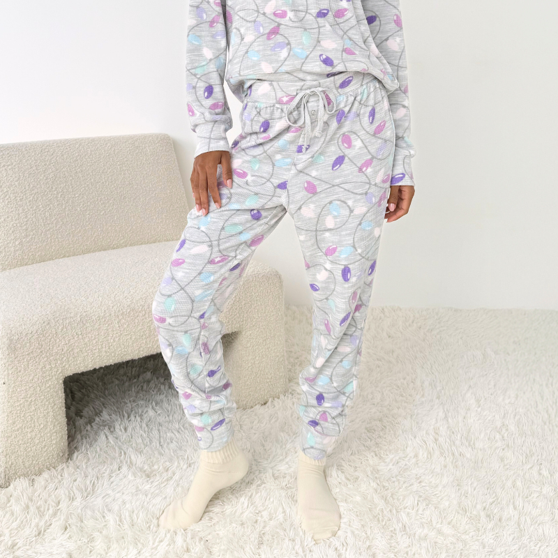 Splendid Marna Waffle PJ Set Holiday Lights